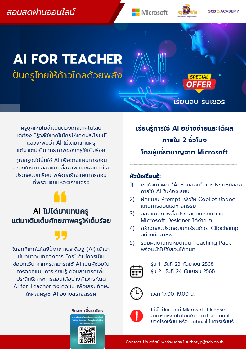 หลักสูตร “ AI for Teacher –ปั้นครูไทยให้ก้าวไกลด้วยพลัง AI”