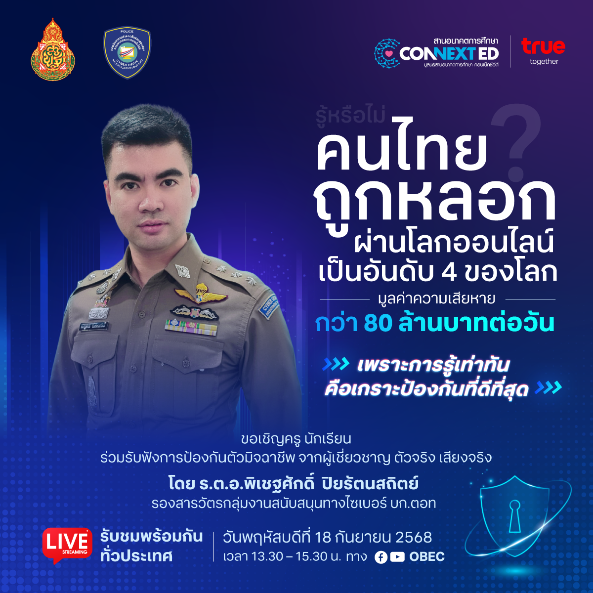 ในยุคที่อินเทอร์เน็ตเปรียบเสมือน “ดาบสองคม” ซึ่งนำมาซึ่งประโยชน์มากมายในชีวิตประจำวัน แต่ในขณะเดียวกันก็แฝงไปด้วยภัยคุกคามจากมิจฉาชีพที่ทวีความรุนแรงมากขึ้น เพื่อสร้างเกราะป้องกันและเสริมสร้างความตระหนักรู้ถึงอันตรายในโลกออนไลน์ สานอนาคตการศึกษา CONNEXT ED จึงได้จัด